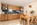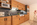 The kitchen area has a ceramic hob, a 3* fridge, a dishwasher, an electric oven, a microwave and an extractor hood, as well as two waste separation bins.
